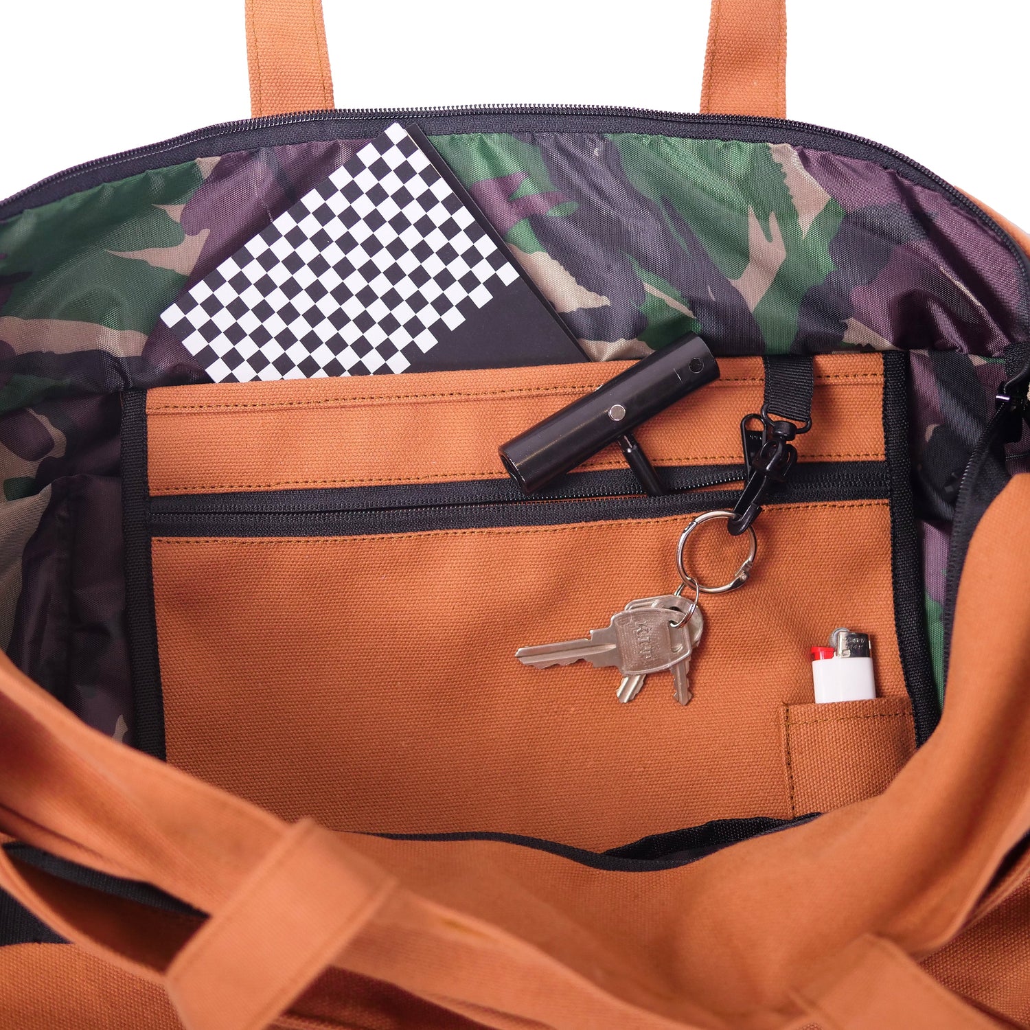 The Proper Tote XL is a spacious, durable everyday carry made from our signature water-resistant canvas. With a 30L capacity, it fits everything from a 15” laptop to clothes for a short weekend trip. Three large front pockets offer quick access, while a hidden zip pocket keeps your valuables secure. Inside, you’ll find an internal organizer pocket and a keychain holder, making it easy to keep all your essentials in place. One bag for work, travel, gym, and daily life.